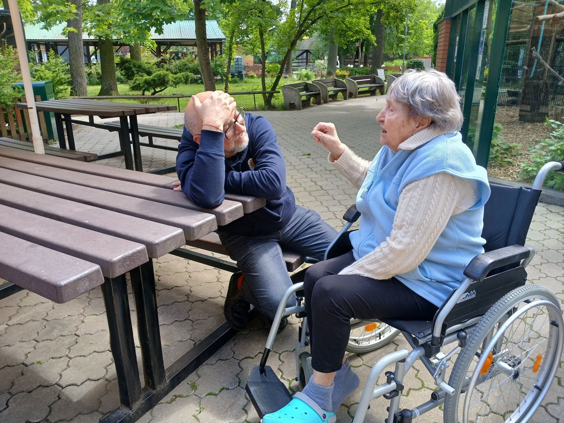 Pracovníci Sonnetoru se totiž rozhodli věnovat ze svého volného času jedno odpoledne nám, našim klientům a doprovodit je na výlet do ZOO. Tak jsme pod záštitou organizace ADRA z Břeclavi "spáchali" velkou akci, plnou dobré nálady, úsměvu a zážitků. Klienti jsme dopravili na parkoviště k ZOO, kde se jich ujali rozesmátí zaměstnanci Sonnetoru a po krátké instruktáži, jak řídit vozíčky, se vydali vstříc dobrodružství. Odpoledne si klienti skvěle užili, doufáme, že i přátelé ze Sonnetoru a moc jim děkujeme za jejich nasazení, velkodušnost a radost, kterou nám rozdali.